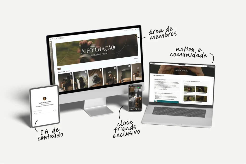 A única formação do mercado que te transforma em uma fotógrafa completa, reconhecida e bem paga pelo que você faz. Um método completo, criado a partir da vivência real de uma fotógrafa em movimento.